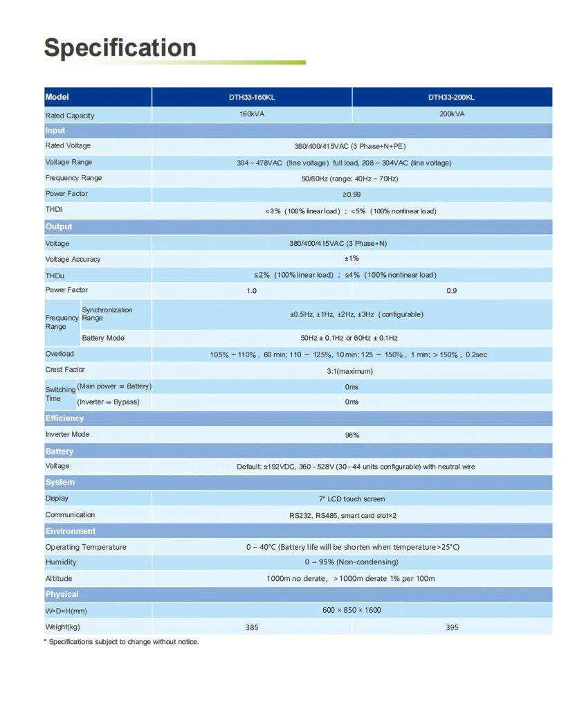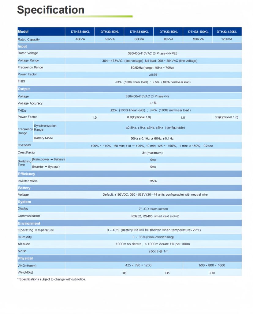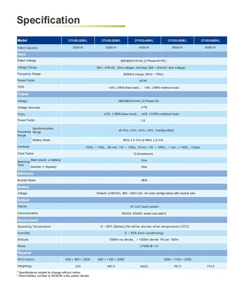 DTH33 Series:10kVA-600kVA, 3 Phase Input,3 Phase Output
